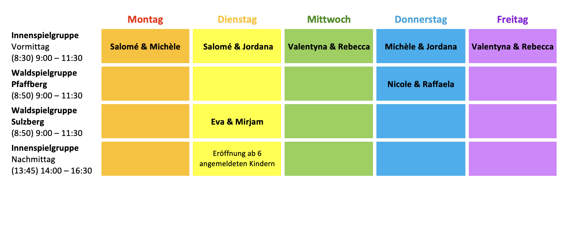 —————————————————— - Innenspielgruppe Nachmittag (Start ab 6 angemeldeten Kindern)